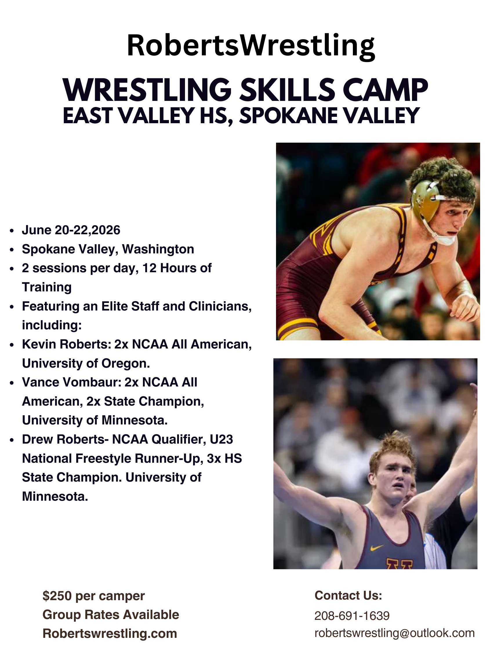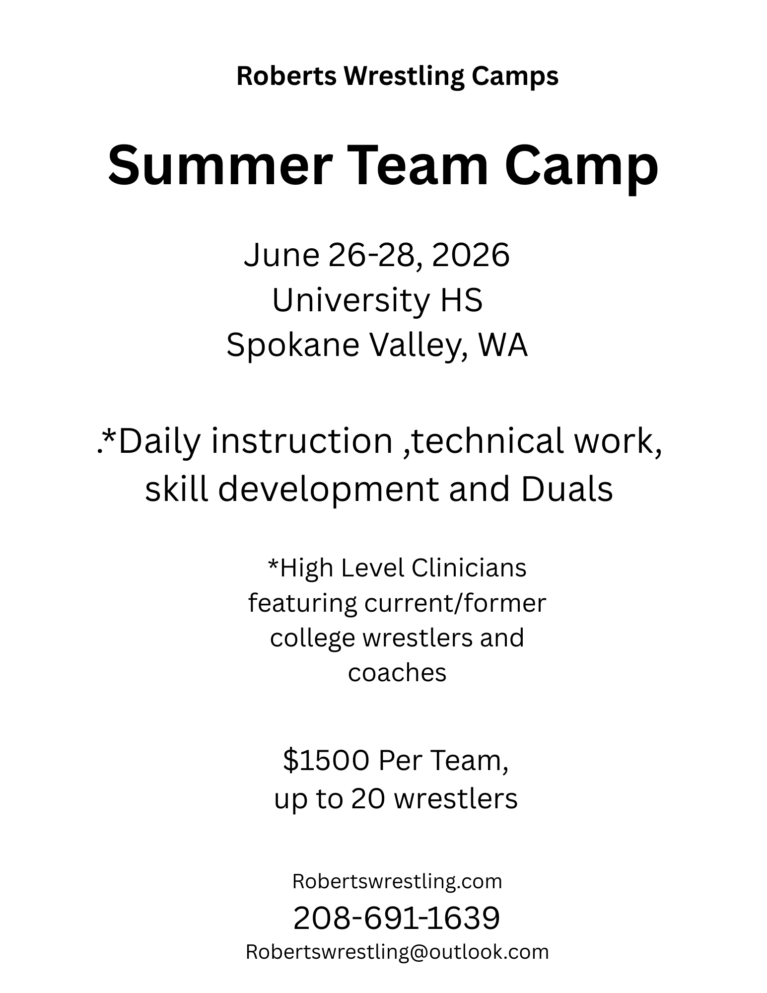 For Registration Forms or additional info or questions, please email Robertswrestling@outlook.com